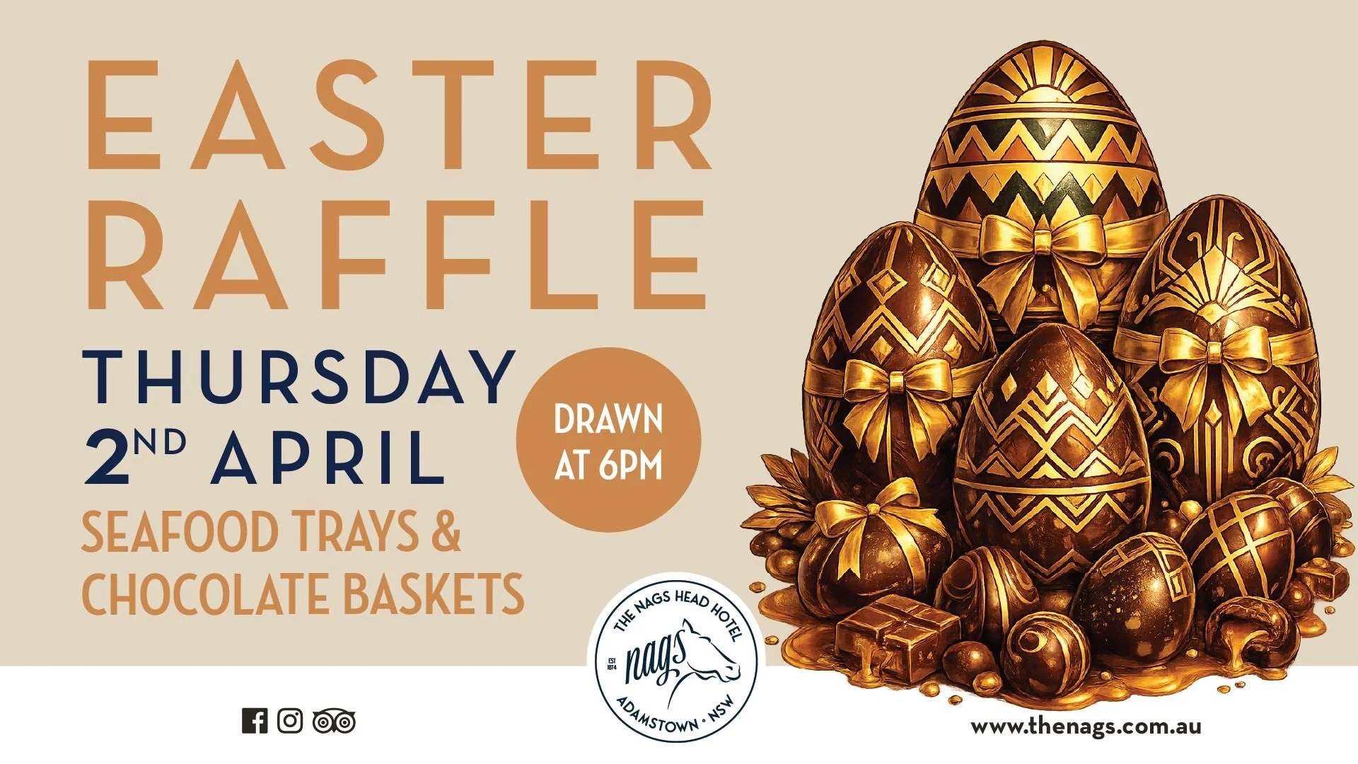 Join us Thursday 2nd April from 6pm for our Easter Raffle, just in time to stock up before Good Friday. We’re giving away fresh seafood trays and Easter baskets, perfect for your long weekend celebrations.